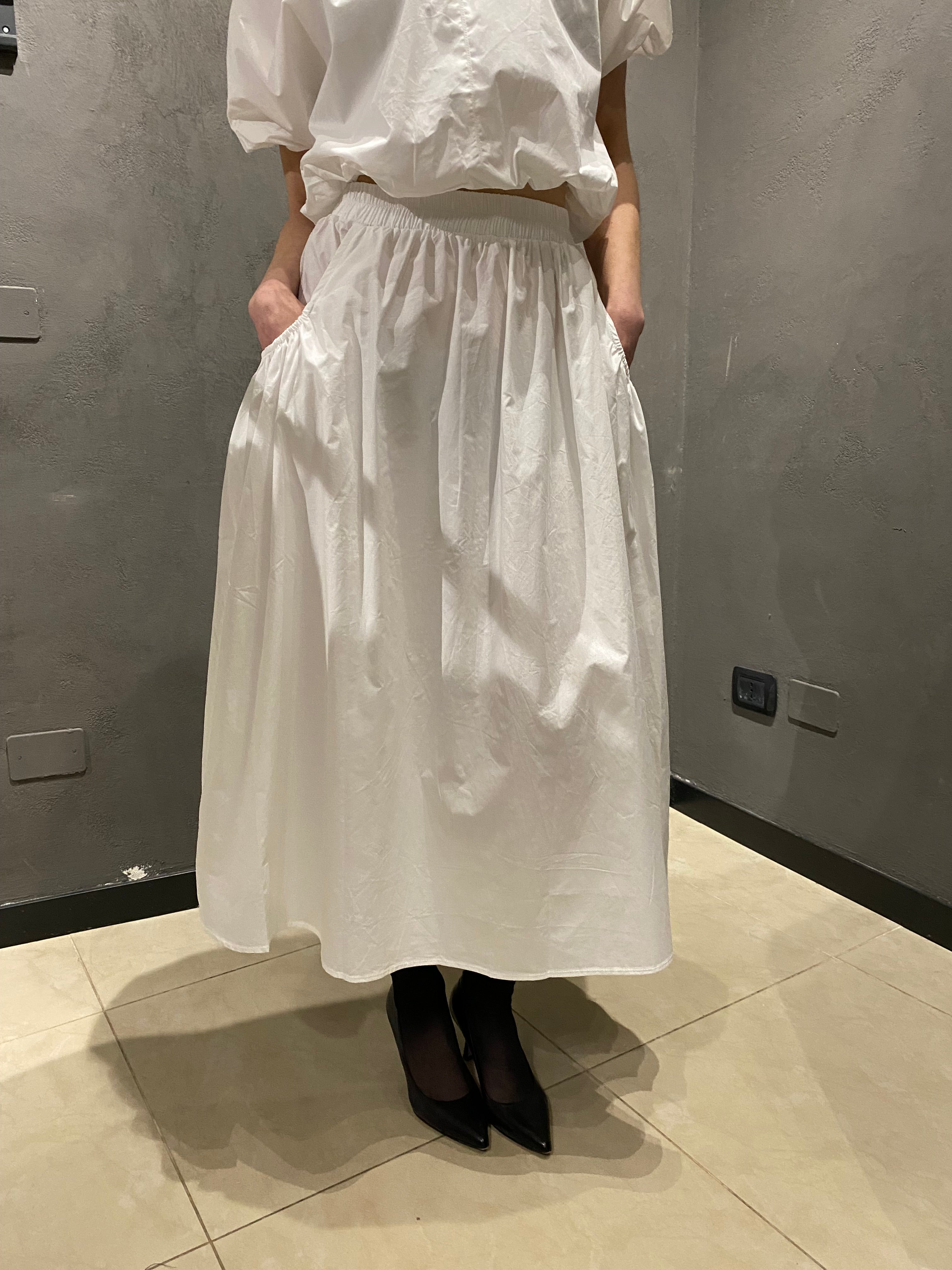 Prezzo normale €54,99 EURPrezzo scontato €54,99 EUR Prezzo normalePrezzo unitario perGONNA BALOON Gonna lunga bianca con silhouette a palloncino. Tessuto leggero effetto popeline di cotone. Vita elasticizzata arricciata per comfort e volume. Tasche laterali a filo pratiche e discrete. Stile...