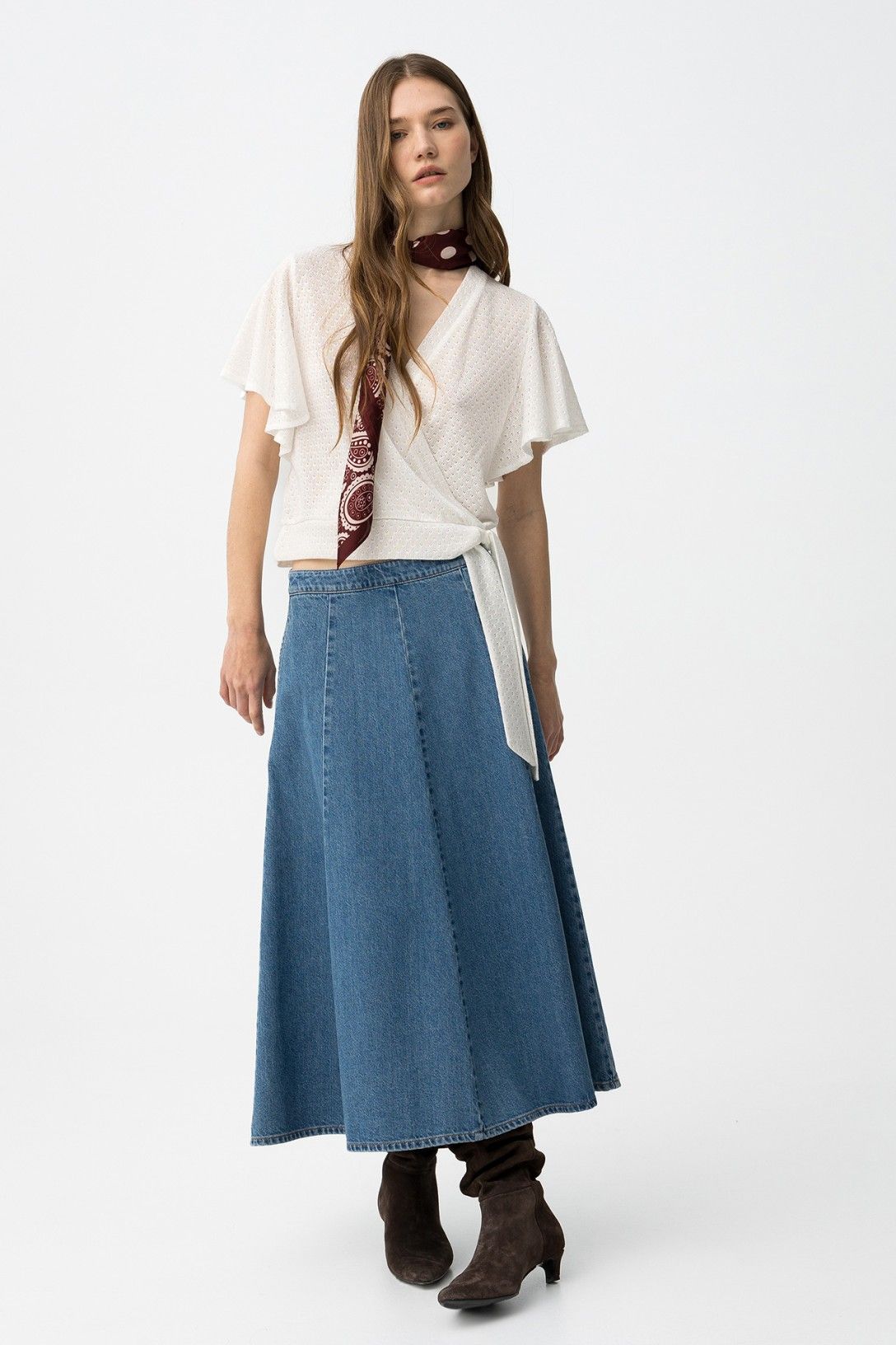 Prezzo normale €49,99 EURPrezzo scontato €49,99 EUR Prezzo normalePrezzo unitario perGONNA DENIM Gonna svasata in denim con linea a campana. Cuciture verticali a vista che valorizzano la forma. Vita alta che definisce e slancia la silhouette. Perfetta per look...