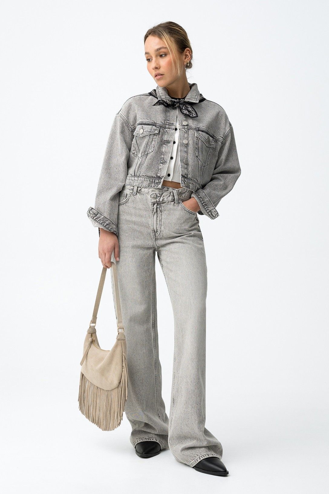 Prezzo normale €44,99 EURPrezzo scontato €44,99 EUR Prezzo normalePrezzo unitario perJEANS WIDE Taglio wide leg ampio e moderno. Denim grigio chiaro con leggero effetto vissuto. Chiusura asimmetrica in vita, dettaglio di forte tendenza. Design versatile, perfetto...