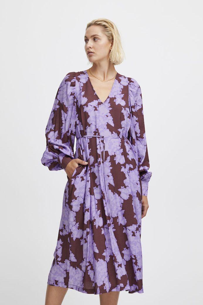 ABITO FLORA Lasciati conquistare dal fascino unico del nostro abito lungo con colori a contrasto marrone e lilla e raffinata fantasia di fiori astratti. Un capo che...