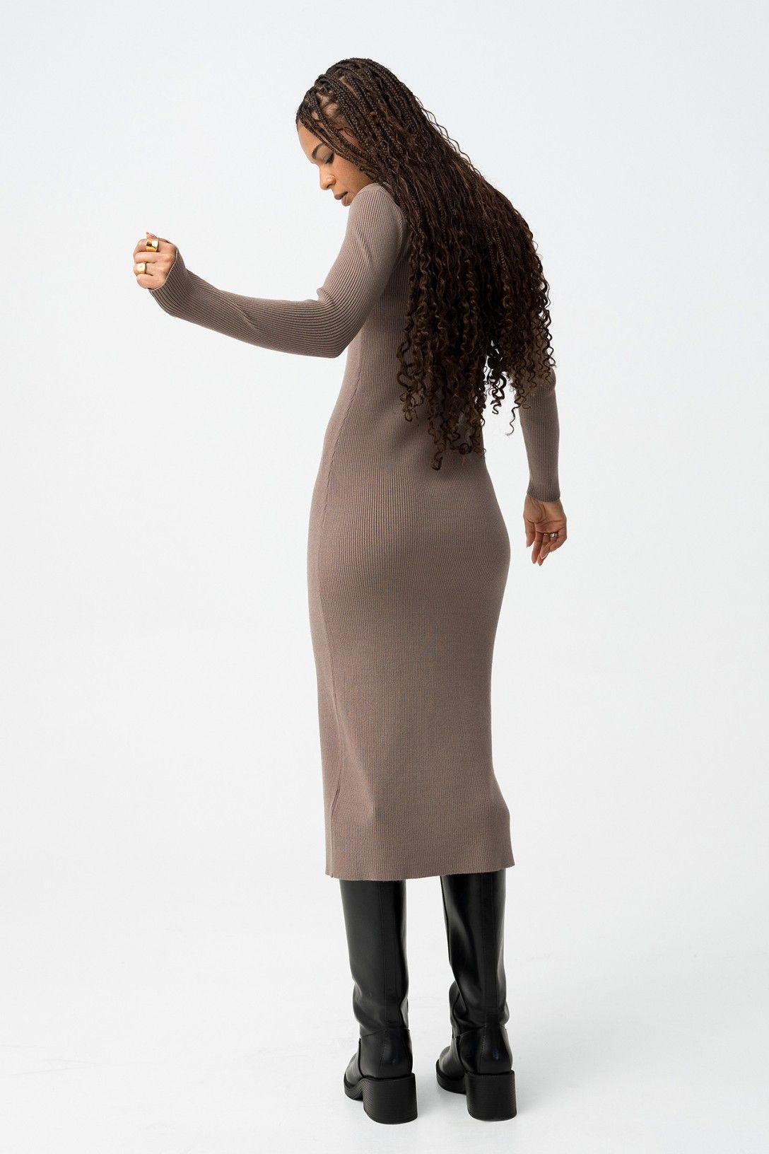 Realizzato in una morbida maglia a coste che avvolge delicatamente la silhouette, esalta le forme con eleganza senza rinunciare alla libertà di movimento.