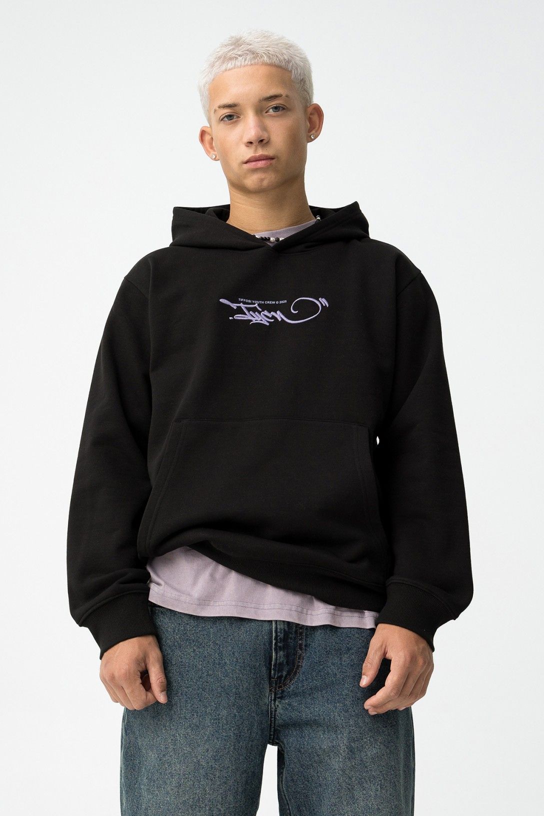 Realizzata in morbido cotone, unisce comfort e personalità grazie al suo design pulito sul davanti e alla grafica effetto graffiti sul retro, che dona al look un tocco ribelle e artistico.