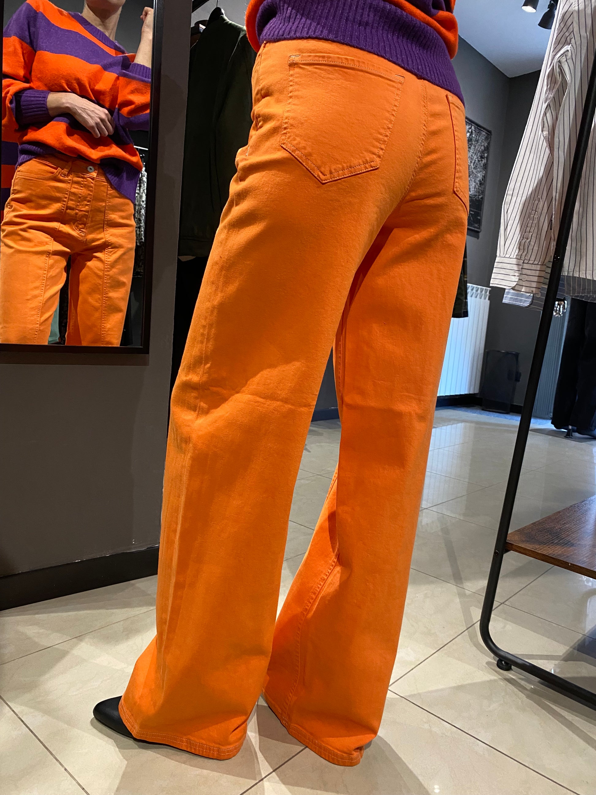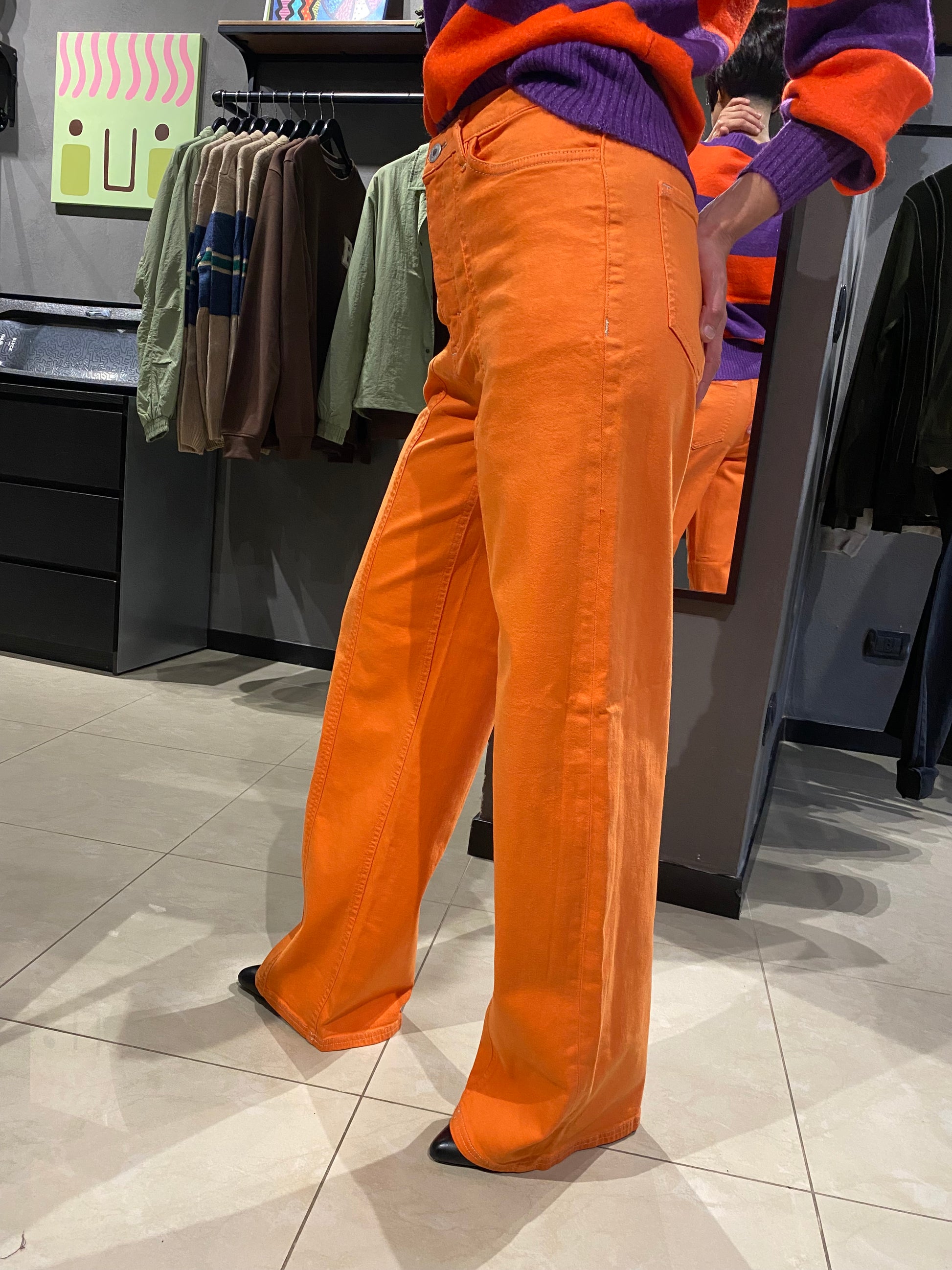Accendi il tuo guardaroba con il jeans wide arancione, il capo che porta energia e carattere in ogni outfit.