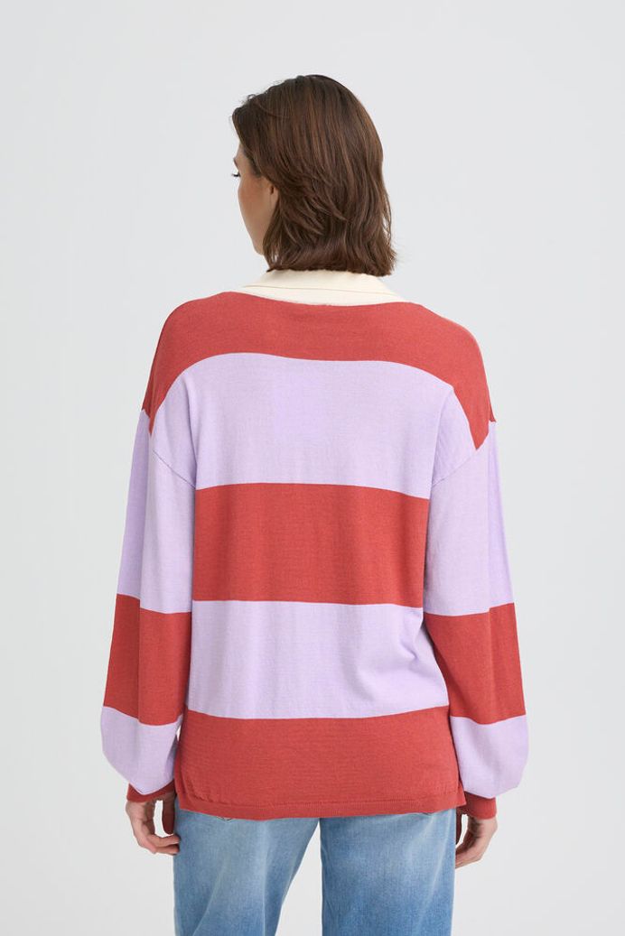 Polo rugby con righe larghe orizzontali. Colletto bianco a contrasto per un look iconico. Chiusura parziale con bottoni scuri. Vestibilità relaxed fit comoda e moderna. Maniche lunghe con polsini a coste. Perfetta per look casual, sportivi e preppy.